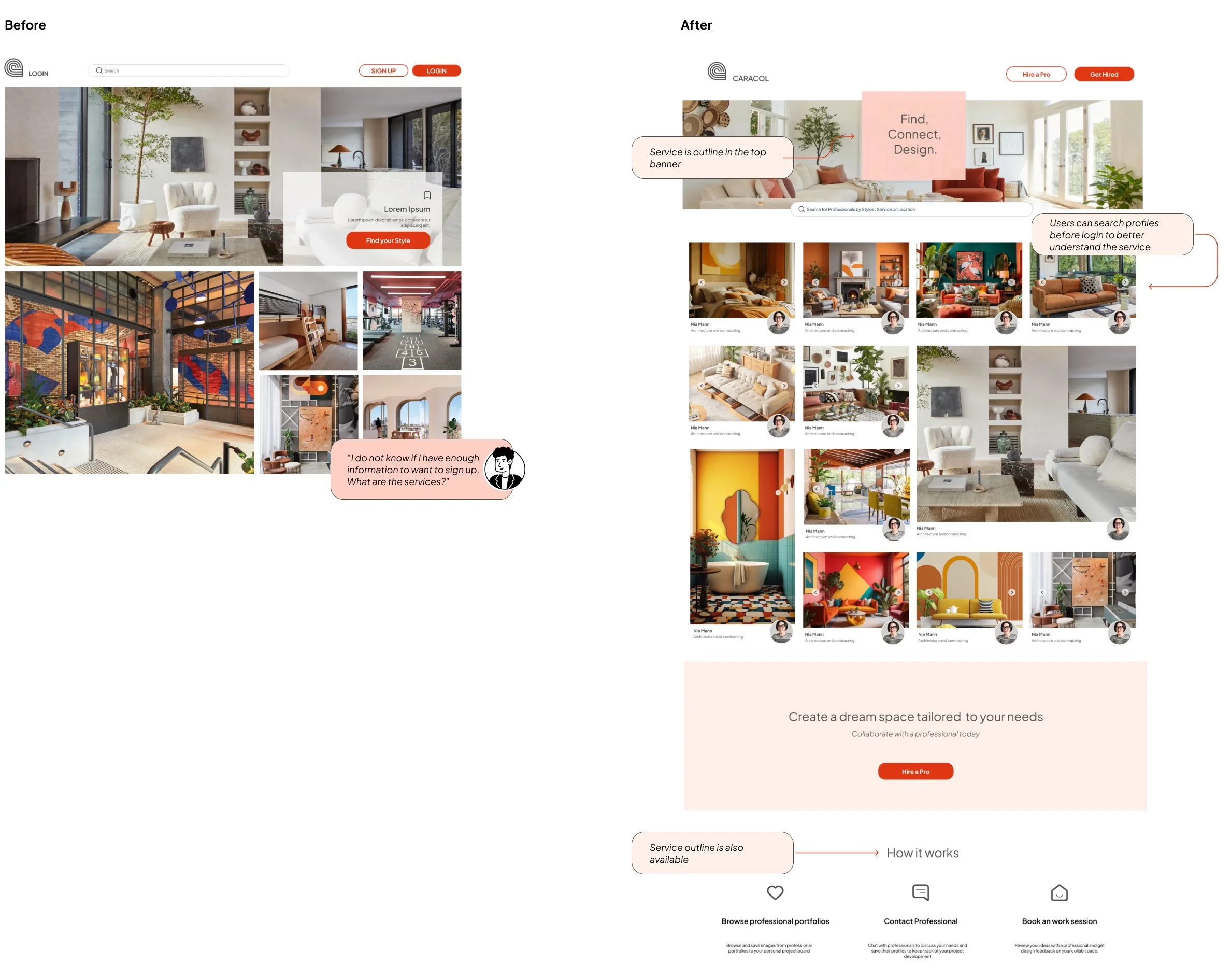 Caracol’s discovery phase began in early 2024, identifying a need for connecting homeowners and renters with home decor professionals. This test evaluates key functionalities with new users.